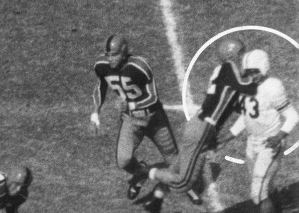 Six photos were taken of the deliberate on-pitch assault on African-American Johnny Bright, a college football player for the Drake Bulldogs.